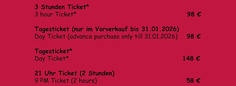 Unser Tipp: Für die rabattierte Übergangszeit bleibt im Vorverkauf bis 31.01.2026 das komplette Tagesticket bei 98 €.